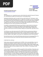 1 2 3 4 5 6 7 8 9 10 11 12 13 14 15 16 17 18 19 20 Introduction ..............................................................................................................................................4 Basic Structure..........................................................................................................................................4 The DOS Header ........................................................................................................................................6 The PE Header...........................................................................................................................................8 The Data Directory................................................................................................................................... 16 The Section Table .................................................................................................................................... 18 The PE File Sections ................................................................................................................................. 20 The Export Section................................................................................................................................... 23 The Import Section .................................................................................................................................. 29 The Loader ............................................................................................................................................. 35 Navigating Imports on Disk ....................................................................................................................... 39 Adding Code to a PE File ........................................................................................................................... 46 Adding Import to an Executable ................................................................................................................. 53 Introduction to Packers............................................................................................................................. 60 Infection of PE Files by Viruses .................................................................................................................. 71 Conclusion .............................................................................................................................................. 73 Relative Virtual Addressing Explained.......................................................................................................... 74 References & Bibliography......................................................................................................................... 78 Tools Used.............................................................................................................................................. 79 Appendix: Complete PE Offset Reference..................................................................................................... 80