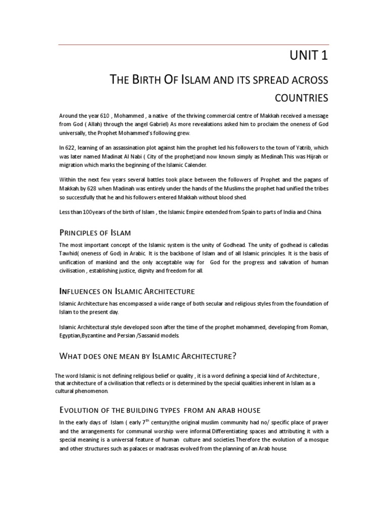 UNIT 1 THE BIRTH OF ISLAM AND ITS SPREAD ACROSS
