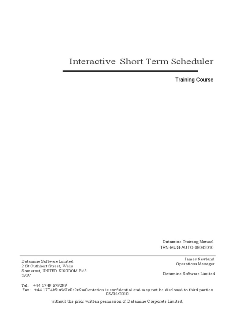 Datamine Software Limited 2 St Cuthbert Street, Wells Somerset, U IT!D "I #D$M %&' 2&W /ames ewland $0erations Manager Datamine Software Limited
