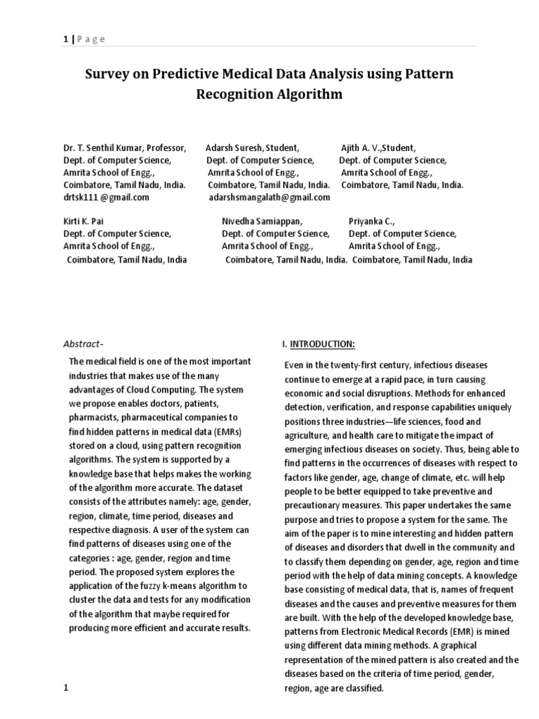 Dr. T. Senthil Kumar, Professor, Dept. of Computer Science, Amrita School of Engg., Coimbatore, Tamil Nadu, India. drtsk111 @gmail.com Kirti K. Pai Dept. of Computer Science, Amrita School of Engg., Coimbatore, Tamil Nadu, India