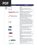 About... The Search Engine List is the web's most comprehensive list of major and minor search engines complete with links and abstracts describing each of the search engines. You may browse them by category or find them by the alphabetical drop-down menu. You may also browse the Directory List as well. The directory list details the major web directories and is sortable by category. Type Search Engine Description Google - The world's most popular search engine. Bing Search: Microsoft's entry into the burgeoning search engine market. Better late than never. Yahoo! Search: The 2nd largest search engine on the web (as defined by a September 2007 Nielsen Netratings report. AltaVista: Launched in 1995, built by researchers at Digital Equipment Corporation's Western Research Laboratory. From 1996 powered Yahoo! Search, since 2003 - Yahoo technology powers AltaVista. Cuil: Cuil was a search engine website (pronounced as Cool) developed by a team of ex-Googlers and others from Altavista and IBM. Cuil, termed as the 'Google Killer' was launched in July, 2008 and claimed to be worlds largest search engine, indexing three times as many pages as Google and ten times that of MS. Now defunct. Excite: Now an Internet portal, was once one of the most recognized brands on the Internet. One of the famous 90's dotcoms. Go.com: The Walt Disney Group's search engine is now also an entire portal. Family-friendly!