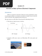 Thyristor: The thyristor is a four-layered, three terminal semiconductor devices, with each layer consisting of alternately N-type or P-type material, for example P-N-PN. The main terminals, labeled anode and cathode, are across all four layers. The control terminal, called the gate, is attached to p-type material near the cathode. (A variant called an SCSSilicon Controlled Switchbrings all four layers out to terminals.) The operation of a thyristor can be understood in terms of a pair of tightly coupled bipolar junction transistors, arranged to cause a self-latching action PULSE-WIDTH MODULATION Pulse-width modulation (PWM), or pulse-duration modulation (PDM), is a modulation technique that conforms the width of the pulse, formally the pulse duration, based on modulator signal information. Although this modulation technique can be used to encode information for transmission, its main use is to allow the control of the power supplied to electrical devices, especially to inertial loads such as motors. The average value of voltage (and current) fed to the load is controlled by turning the switch between supply and load on and off at a fast pace. The longer the switch is on compared to the off periods, the higher the power supplied to the load is. The PWM switching frequency has to be much faster than what would affect the load, which is to say the device that uses the power. Typically switchings have to be done several times a minute in an electric stove, 120 Hz in a lamp dimmer, from few kilohertz (kHz) to tens of kHz for a motor drive and well into the tens or hundreds of kHz in audio amplifiers and computer power supplies. DC MOTOR A DC motor is a mechanically commutated electric motor powered from direct current (DC). The stator is stationary in space by definition and therefore the current in the rotor is switched by the commentator to also be stationary in space. This is how the relative angle between the stator and rotor magnetic flux is maintained near 90 degrees, which generates the maximum torque.