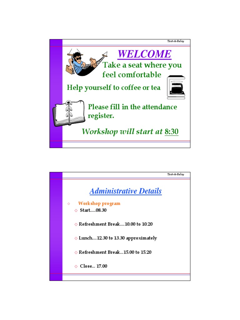 This document contains information about a workshop on practical power systems protection for the electrical industry hosted by Test-A-Relay consulting. The workshop will cover topics like motor protection functions, power system protection requirements, types of motor failures and their causes, motor capability curves, and more. It provides details on the schedule, topics to be discussed each day, the lecturer conducting the workshop, and encourages participants to ask questions.