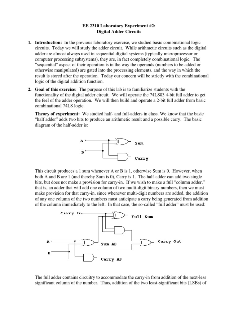 EE 2310 Laboratory Experiment #2: Digital Adder Circuits 1.