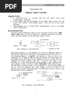 Introduction: In the previous laboratory exercise, we studied basic combinational logic circuits. Today we will study the adder circuit. While arithmetic circuits such as the digital adder are almost always used in sequential digital systems (typically microprocessor or computer processing subsystems), they are, in fact completely combinational logic. The sequential aspect of their operation is in the way the operands (numbers to be added or otherwise manipulated) are gated into the processing elements, and the way in which the result is stored after the operation. Today our concern will be strictly with the combinational logic of the digital addition function. 2. Goal of this exercise: The purpose of this lab is to familiarize students with the functionality of the digital adder circuit. We will operate the 74LS83 4-bit full adder to get the feel of the adder operation. We will then build and operate a 2-bit full adder from basic combinational 74LS logic. Theory of experiment: We studied half- and full-adders in class. We know that the basic half adder adds two bits to produce an arithmetic result and a possible carry. The basic diagram of the half-adder is: