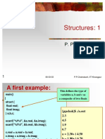 name, number of districts and total population. Read and display the data. # include <stdio.h> # include <conio.h> struct state { char *name; int dist; long pop; }; void main() { clrscr(); state s; printf ("\n Enter state name, number of dist. and population : "); scanf ("%s %d %ld",s.name,&s.dist,&s.pop); printf ("\n State : %s",s.name); printf ("\n District : %d",s.dist); printf ("\n Population : %ld",s.pop); } OUTPUT Enter state name, number of dist. and population : ms 20 700000 State : ms District : 20 Population : 700000 Explanation In the above program struct state is defined with the members name, dist, and pop. Using scanf () statement data is read. The printf () statement displays the data on the screen. The dot operator is used to access the elements. 2) Write the program (1)-using pointer to structure. # include <stdio.h> # include <conio.h> struct state { char *name; int dist; long pop; }; void main() { clrscr();