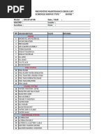 SR. DESCRIPTION 1 Check grease bin cover 2 Check grease bin 3 4 5 6 7 Check material trolley Check material trolley Check shop electrical control panel Check tube light working codition Pick up fallen material Check stand for torque wrench