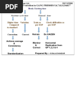 SR 1 2 3 4 5 6 7 8 9 DESCRIPTION Check spare material trolly Cleaning Q alert display board Check AHU structure Check balancer trolly guard Check gun torque Check fixture condition Check fixture condition Kit bin fixture condition Check kit bin carrier rod FREQUENCY METHOD weekly Manual Weekly manual Weekly manual Weekly manual Weekly manual Weekly manual Weekly manual Weekly manual Weekly manual STANDRED Proper bin ,bin colour No dust,durt No dust,durt No dust,durt As per application No dust,durt No loose No dust,durt No missing