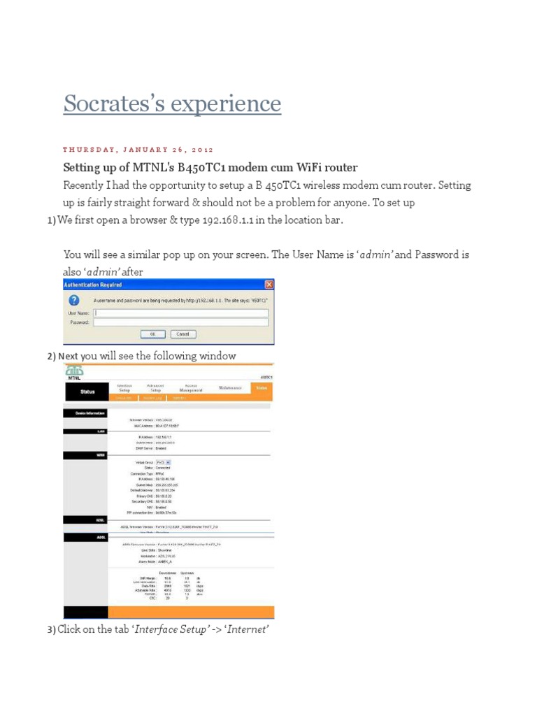 Setting up of MTNL's B450TC1 modem cum WiFi router