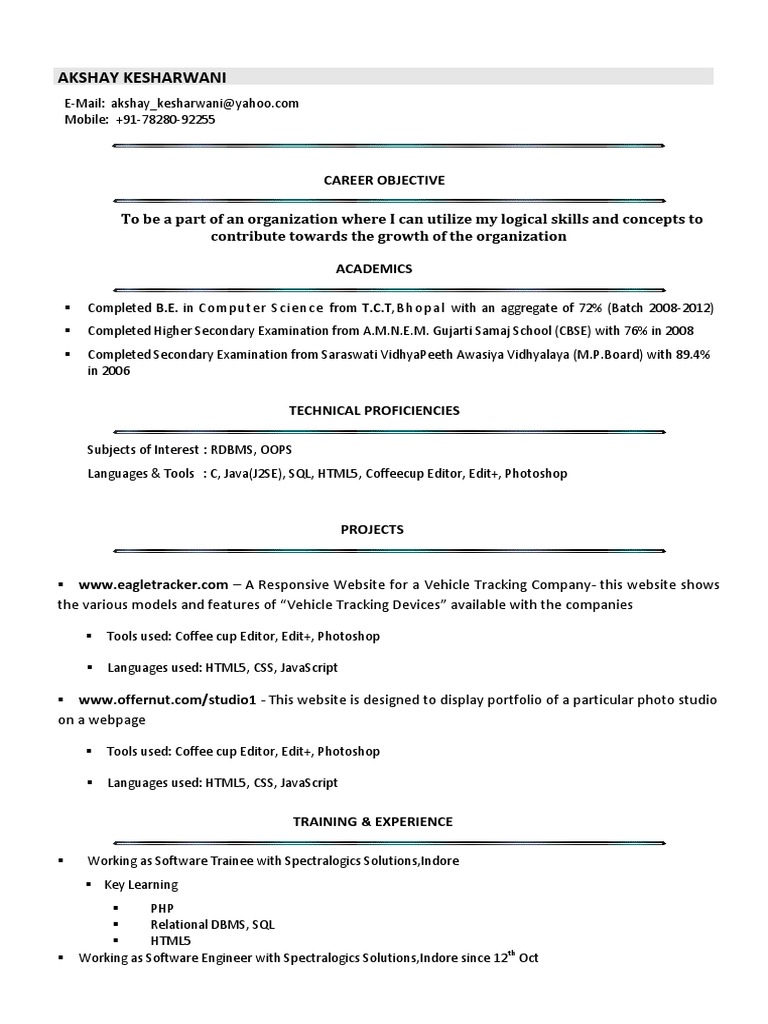 CAREER OBJECTIVE To be a part of an organization where I can utilize my logical skills and concepts to contribute towards the growth of the organization ACADEMICS