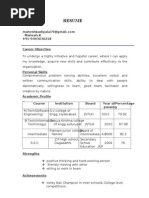Fathers Name Mothers Name Date of Birth Present Address Nationality Marital Status Religion Languages Known Hobbies Strengths : Vishwanath Kesharwani : Suneeta Kesharwani : 17 June, 1990 : G-26, Swami Samarth colony, Sus Road, Pashan, Pune(Maharashtra) : Indian : Single : Hindu : English, Hindi : Playing Football, Video games : Commitment to self-improvement, Adaptive, Hardworking