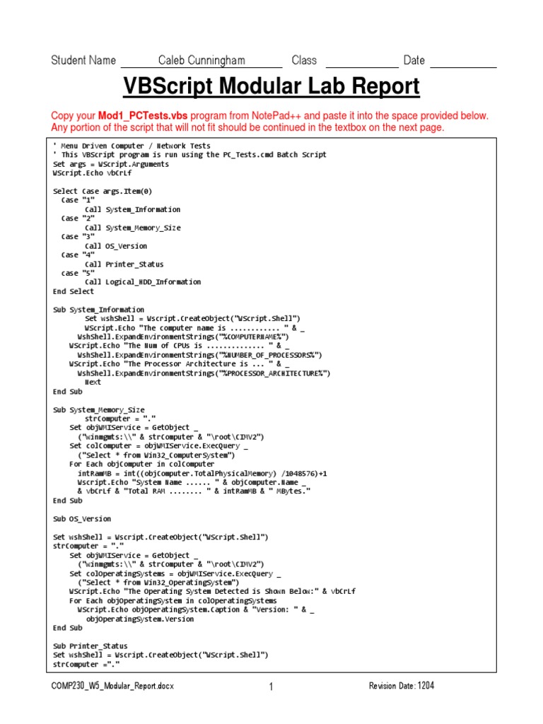 VBScript Modular Lab Report