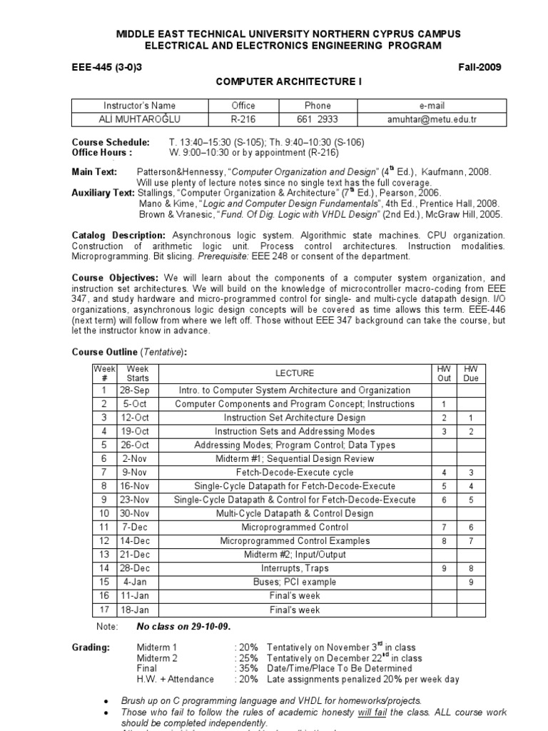 Will use METU-Online to post HWs, Labs, solutions, lecture notes, announcements, etc.