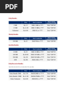 Data Volume 5 MB 10 MB 30 MB 250 MB 1 GB UNL AMOUNTS Tk.4 Tk.8 Tk.20 Tk.100 Tk.200 Tk.600 VALIDITY PERIOD 1 day 2 days 7 days 15 days 30 days 30 days SUBSCRIPTION CODE D1 D2 D3 D4 D5 D6