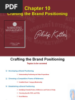 Part Of The Identity When a brand position exists, the brand identity and value proposition can be developed fully, with texture and depth. They do not have to be concise statements of what is to be communicated, because the brand position takes on that role. For some brands, the brand identity and value proposition do combine into a compact statement that can serve (perhaps with minor adjustments) as the brand po sition. In most cases, however, the former are significantly broader than the latter. To illustrate, elements that are extremely important to the identity may not play a role in the active communication strategy. For McDonald's, cleanliness is certainly one of the important parts of the culture and identity. It would be unlikely to be a part of the brand po sition, however, because it would not differentiate McDonald's from its major competitors. Brand position can be changed without changing the identity or value proposition of which it is a subset. Saturn, for example, posi tioned itself during the first year as a world-class car. In subsequent years the position focused on a different subset of the brand identity - the customer relationship based on friendship and respect. The iden tity or value proposition did not change just the focus of the pos ition, and thus the communications program. But how does one choose which elements of the identity to include in the brand position? Three places to look are at the core identity, at points of leverage within the identity structure, and at the value proposition. Look to the Core Identity The core identity by definition represents the central, timeless es sence of the brand. Thus the most unique and valuable aspects of the brand are often represented in the core identity. Further, there should be a cluster of brand elements surrounding each core identity com ponent that (in addition to giving it richness and texture) opens up multiple execution alternatives. Finally, the brand position often should include the core identity just so communication elements do not stray from the brand's essence.