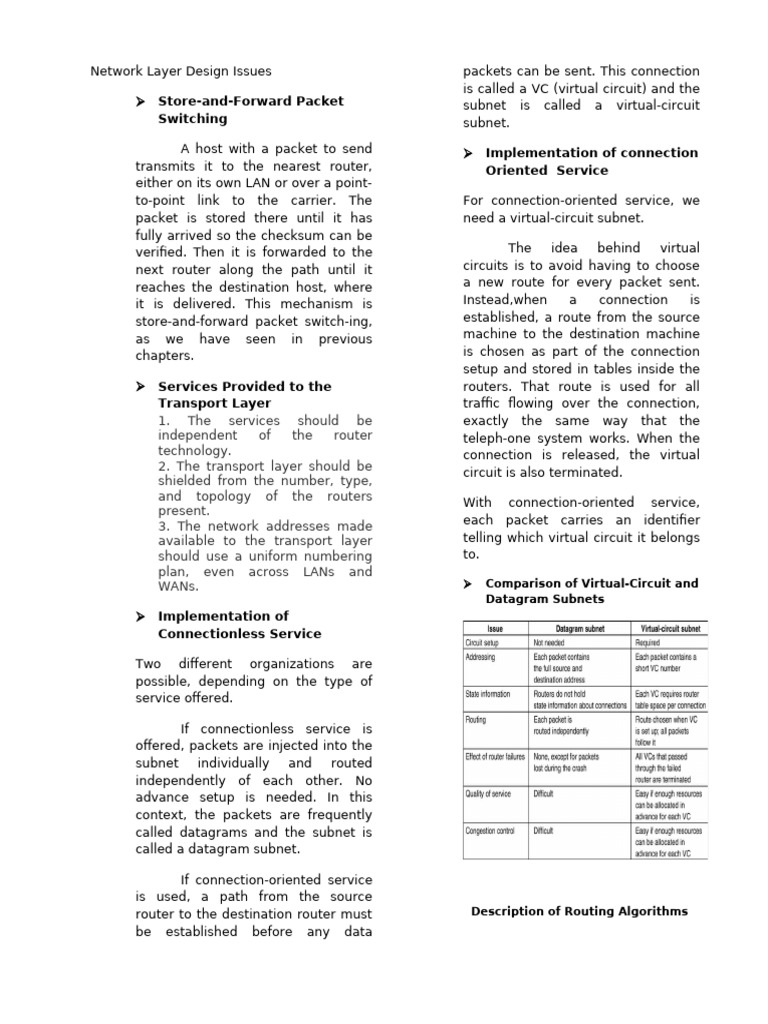 Network Layer Design Issues packets can be sent.
