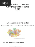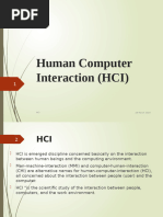 evolved over time It is the study of how people interact with computers and to what extent computers are or are not developed for successful interaction with human beings. It is also a discipline concerned with the study, design, construction and implementation of human-centric interactive computer systems. A user interface, such as a GUI, is how a human interacts with a computer, and H I goes beyond designing screens and menus that are easier to use and studies the reasoning behind building specific functionality into computers and the long-term effects that systems will have on humans. It is a very broad discipline that encompasses different specialties with different concerns regarding computer development! computer science is concerned with the application design and engineering of the human interfaces" sociology and anthropology are concerned with the interactions between technology, wor# and organi$ation and the way that human systems and technical systems mutually adapt to each other" ergonomics is concerned with the safety of computer systems and the safe limits of human cognition and sensation" psychology is concerned with the cognitive processes of humans and the behavior of users" linguistics is concerned with the development of human and machine languages and the relationship between the two. Human-computer interaction %H I& is an area of research and practice that emerged in the early '()*s, initially as a specialty area in computer science embracing cognitive science and human factors engineering. H I has expanded rapidly and steadily for three decades, attracting professionals from many other disciplines and incorporating diverse concepts and approaches. +o a considerable extent, H I now aggregates a collection of semiautonomous fields of research and practice in human-centered informatics. However, the continuing synthesis of disparate conceptions and approaches to science and practice in H I has produced a dramatic example of how different epistemologies and paradigms can be reconciled and integrated in a vibrant and productive intellectual pro,ect. Until the late '(-*s, the only humans who interacted with computers were information technology professionals and dedicated hobbyists. +his changed disruptively with the emergence of personal computing in the later '(-*s. .ersonal computing, including both personal software %productivity applications, such as text editors and spreadsheets, and interactive computer games& and personal computer platforms %operating systems, programming languages, and hardware&, made everyone in the world a potential computer user, and vividly highlighted the deficiencies of computers with respect to usability for those who wanted to use computers as tools. +he challenge of personal computing became manifest at an opportune time. +he broad pro,ect of cognitive science, which incorporated cognitive psychology, artificial intelligence, linguistics, cognitive anthropology, and the philosophy of mind, had formed at the end of the '(-*s. .art of the programme of cognitive science was to articulate