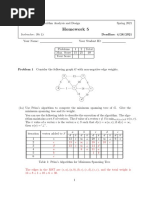 Problem set #2 1. Undirected vs. directed connectivity. (a) Prove that in any connected undirected graph G = (V, E ) there is a vertex v V whose removal leaves G connected. (Hint: Consider the DFS search tree for G.) (b) Give an example of a strongly connected directed graph G = (V, E ) such that, for every v V , removing v from G leaves a directed graph that is not strongly connected. (c) In an undirected graph with two connected components it is always possible to make the graph connected by adding only one edge. Give an example of a directed graph with two strongly connected components such that no addition of one edge can make the graph strongly connected. 2. Give a linear algorithm to compute the chromatic number of graphs where each vertex has degree at most 2. Must such graphs be bipartite? 3. Two paths in a graph are called edge-disjoint if they have no edges in common. Show that in any undirected graph, it is possible to pair up the vertices of odd degree and nd paths between each such pair so that all these paths are edge-disjoint. 4. A mother vertex in a directed graph G = (V, E ) is a vertex v such that all other vertices G can be reached by a directed path from v . (a) Give an O(n + m) algorithm to test whether a given vertex v is a mother of G, where n = |V | and m = |E |. (b) Give an O(n + m) algorithm to test whether graph G contains a mother vertex. 5. Squares. Design and analyze an algorithm that takes as input an undirected graph G = (V, E ) and determines whether G contains a simple cycle (that is, a cycle which doesnt intersect itself) of length four. Its running time should be at most O(|V |3 ). You may assume that the input graph is represented either as an adjacency matrix or with adjacency lists, whichever makes your algorithm simpler. 6. Suppose an arithmetic expression is given as a tree. Each leaf is an integer and each internal node is one of the standard arithmetical operations (+, , , /). For example, the expression 2 + 3 4 + (3 4)/5 is represented by the tree in Figure below. Give an O(n) algorithm for evaluating such an expression, where there are n nodes in the tree. Graph Algorithms