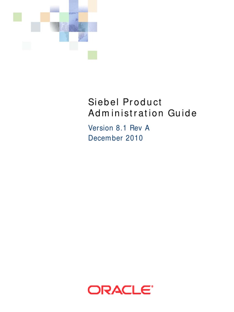 Copyright 2005, 2010, Oracle. All rights reserved. The Programs (which include both the software and documentation) contain proprietary information; they are provided under a license agreement containing restrictions on use and disclosure and are also protected by copyright, patent, and other intellectual and industrial property laws. Reverse engineering, disassembly, or decompilation of the Programs, except to the extent required to obtain interoperability with other independently created software or as specified by law, is prohibited. The information contained in this document is subject to change without notice. If you find any problems in the documentation, please report them to us in writing. This document is not warranted to be errorfree. Except as may be expressly permitted in your license agreement for these Programs, no part of these Programs may be reproduced or transmitted in any form or by any means, electronic or mechanical, for any purpose. PRODUCT MODULES AND OPTIONS. This guide contains descriptions of modules that are optional and for which you may not have purchased a license. Siebels Sample Database also includes data related to these optional modules. As a result, your software implementation may differ from descriptions in this guide. To find out more about the modules your organization has purchased, see your corporate purchasing agent or your Oracle sales representative. If the Programs are delivered to the United States Government or anyone licensing or using the Programs on behalf of the United States Government, the following notice is applicable: U.S. GOVERNMENT RIGHTS. Programs, software, databases, and related documentation and technical data delivered to U.S. Government customers are "commercial computer software" or "commercial technical data" pursuant to the applicable Federal Acquisition Regulation and agency-specific supplemental regulations. As such, use, duplication, disclosure, modification, and adaptation of the Programs, including documentation and technical data, shall be subject to the licensing restrictions set forth in the applicable Oracle license agreement, and, to the extent applicable, the additional rights set forth in FAR 52.227-19, Commercial Computer Software--Restricted Rights (June 1987). Oracle USA, Inc., 500 Oracle Parkway, Redwood City, CA 94065. The Programs are not intended for use in any nuclear, aviation, mass transit, medical, or other inherently dangerous applications. It shall be the licensee's responsibility to take all appropriate fail-safe, backup, redundancy and other measures to ensure the safe use of such applications if the Programs are used for such purposes, and we disclaim liability for any damages caused by such use of the Programs. Oracle is a registered trademark of Oracle Corporation and/or its affiliates. Other names may be trademarks of their respective owners. The Programs may provide links to Web sites and access to content, products, and services from third parties. Oracle is not responsible for the availability of, or any content provided on, third-party Web sites. You bear all risks associated with the use of such content. If you choose to purchase any products or services from a third party, the relationship is directly between you and the third party. Oracle is not responsible for: (a) the quality of third-party products or services; or (b) fulfilling any of the terms of the agreement with the third party, including delivery of products or services and warranty obligations related to purchased products or services. Oracle is not responsible for any loss or damage of any sort that you may incur from dealing with any third party.