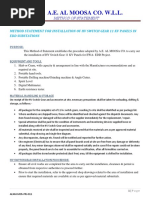 1. Purpose & Scope The purpose of this method statement is to ensure that correct materials & equipment are used and agreed procedures are implemented during fabrication, installation, testing and flushing of firefighting piping sprinkler system. This method statement specifies the sequence and methodology to be followed for the installation and testing of firefighting piping and sprinklers, fire hose reels and fire extinguishers activities to achieve the best quality of workman ship for installation works. 2. References & Standards