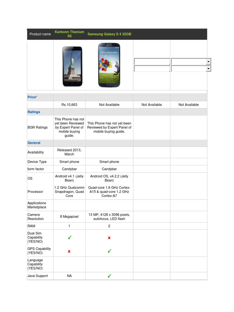 Processor Applications Marketplace Camera Resolution RAM Dual Sim Capability (YES/NO) GPS Capability (YES/NO) Language Capability (YES/NO) Java Support
