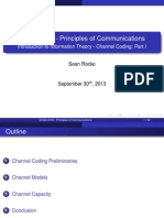 Denition 7.1 (Discrete Channel I) Let X and Y be discrete alphabets, and p(y |x) be a transition matrix from X to Y . A discrete channel p(y |x) is a single-input single-output system with input random variable X taking values in X and output random variable Y taking values in Y such that Pr{X = x, Y = y } = Pr{X = x}p(y |x) for all (x, y ) X Y . Denition 7.2 (Discrete Channel II) Let X , Y , and Z be discrete alphabets. Let : X Z Y , and Z be a random variable taking values in Z , called the noise variable. A discrete channel (, Z ) is a single-input single-output system with input alphabet X and output alphabet Y . For any input random variable X , the noise variable Z is independent of X , and the output random variable Y is given by Y = (X, Z ).