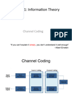Construction of codes with ecient encoding and decoding algorithms falls in the domain of channel coding theory. Performance of a code is measured by how far the rate is away from the channel capacity. All channel codes used in practice are linear: ecient encoding and decoding in terms of computation and storage. Channel coding has been widely used in home entertainment systems (e.g., audio CD and DVD), computer storage systems (e.g., CD-ROM, hard disk, oppy disk, and magnetic tape), computer communication, wireless communication, and deep space communication. The most popular channel codes used in existing systems include the Hamming code, the Reed-Solomon code, the BCH code, and convolutional codes. In particular, turbo code, a kind of convolutional code, is capacity achieving.