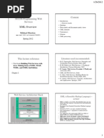 It provides a shorthand notation for empty elementsfor example, we could use <br/> instead of <br></br>which HTML does not. A XML document must be well-formed 25. What are the advantages of schema over DTD? (MAY/JUNE12) It provides more control over the type of data that can be assigned to elements and as compared to DTd. DTD dose not enable you to define your own customized data types. But schema definition enables you to create your own data types. It also allows specifying restrictions on data. The syntax for defining DTD is different from the syntax used for creating an XML document .But the syntax for defining XSD is the same as the syntax of an XML document. 26. What are the datatypes in an XML schema? Primitive,Derived,Atomic,List,Union 27. What are the different revolution in which XML is playing a major role? a)Data revolution b)Architectural revolution c)Software revolution 28. What are the advantages of XML?(MAY/JUNE13) XML files are human readable. Widespread industry support exists for XML due to its inexpensiveness and convenience in usage.It provides a way of creating domain specific vocabulary. It allows data interchange between different computers. It provides user selected view of data. 29. What is Electronic Data Interchange (EDI)? EDI is often used as the replacement for business communication through conventional business documents such as purchase orders,request for quotations,invoice and shipping notices.This kind of exchange takes place between trading partners. In order to interchange data using EDI to trading partners must be agreed upon a common format. 30. What is W3C (World Wide Web) Consortium? W3c is responsible for the development of web specifications that describe communication protocols and technologies for the web .XML was defined by w3c to ensure that structured data is uniform and independent of vendors of applications.W3c has laid down certain rules that meet to be followed by the all XML applications. Some of these rules are: a.XML must be directly usable over the internet. b. XML must support the wide variety of applications. c.XML must be SGML. d.XML documents must be human legible and clear.e.XML design must be formal and concise. 31. What is XML? XML stands for Extensible markup language a language developed by the World wide web consortium (W3C).It is considered a meta language because it is used To define other languages through the use of markup language ,which add structure and Meaning to document. 32. List out the reasons for not using attributes to store data. 1. Attributes cannot contain multiple values, while elements can have multiple sub elements. 2. Attributes are not easily expandable to account for future changes. 3. Attributes are more difficult than elements to manipulate with programs. 4. Attributes values are not easy to check against a document type definition. 4