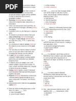 A pager receives signals from TRANSMITTERS Restaurants use PAGERS to signal their patrons when a table is ready A typical setup for a HOME network would include a wireless router connected to an ISP Cell phone towers have a limited communication range of one mile IS FALSE A (ALL OF THE ABOVE, INCLUDING SATELITTES NETWORK ADAPTERS AND CELL PHONE TOWERS) is considered a telecommunications device that sends and receives signals. An advantage of a home network is the ability to back-up data IS TRUE A protocol and standard are terms that have the same meaning when defining the format of communication devices IS FALSE A DSL modem is similar to a satellite connection and provides high-speed Internet service over telephone lines IS FALSE GPS technology has become popular in social networking IS TRUE A PERSONAL Area Network is the interconnection of personal information technology devices, typically wirelessly, within the range of an individual. RADIO SPECTRUM, part of the electromagnetic spectrum, refers to all of the frequencies available for radio waves from about 10 KHz to 300 GHz and their assigned uses. FIBER-OPTIC is a popular cable type used as network backbone by major telecommunications companies. High end radio waves include infrared light and ALL OF THE ABOVE (MICROWAVES, GAMMA RAYS, AND X-RAYS) In most closed-in areas, Wi-Fi technology has a maximum range of 250-1,000 FEET Analog systems were designed to support voice communications is TRUE It is typically inexpensive and easy to change your cellular carrier once you have signed a contract is FALSE Connecting two local area networks to share information becomes a personal area network is FALSE Fiber-optic cabling sends signals much slower than twisted pair or coaxial cabling is FALSE A PAN typically covers a range of around 33 feet Most cell phone plans offer voice, email, GPS, and wireless internet at no extra charge is FALSE Signal frequency is measured in HERTZ