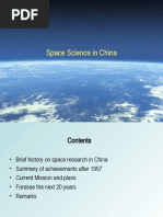 a larger and larger role in international affairs. Although Chinas increasing influence is most easily noticed through the ubiquitous Made in China tags on nearly all manufactured goods, China is now seeking to establish a new presence in the field of space exploration. Although the Chinese Space Program was established 35 years after NASA, Chinese engineers have made much progress despite their relatively late start in comparison with the US and Russian space programs. The Chinese program has already launched multiple probes into space. In fact, the Chinese space program has successfully completed more than 67 launches, launching approximately 79 spacecraft into orbit. The China National Space Administrations (CNSA) numerous unmanned missions include multiple observational satellites, Change-1, a lunar probe that collected data of the moon and mapped the moons surface, and Shenzhou 8, a space lab module paving the way for Chinas plans for a space station. In addition to unmanned flights, China took another step forward and became the third country to independently launch a man into space and complete a spacewalk in 2003. Launched on October 15, the first Chinese manned spacecraft carried astronaut Yang Liwei into space and spent 21.5 hours in orbit around the Earth. CNSA soon followed with two more manned missions in 2005 and 2008.