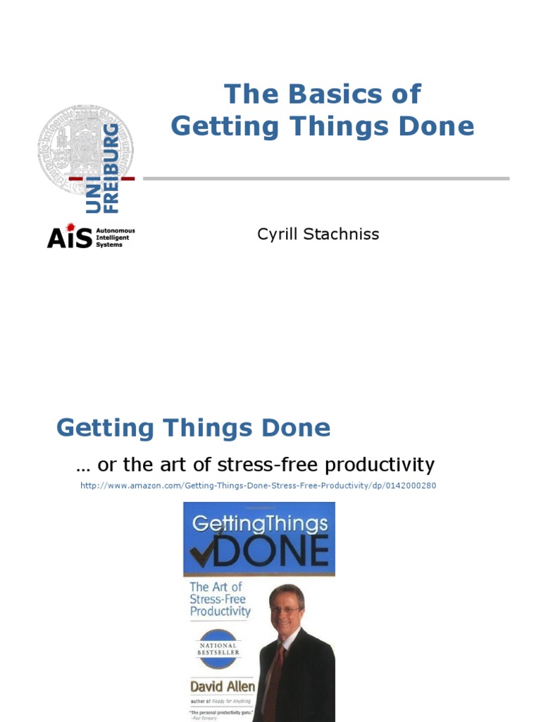 !! This talk was intended to sketch GTD !! To implement it, read the book !! Good tools are important to really implement GTD !! Spent too much time on email: Watch the inbox-zero (Google)