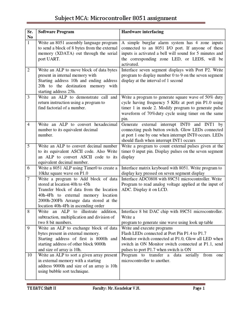 Subject MCA: Microcontroller 8051 assignment