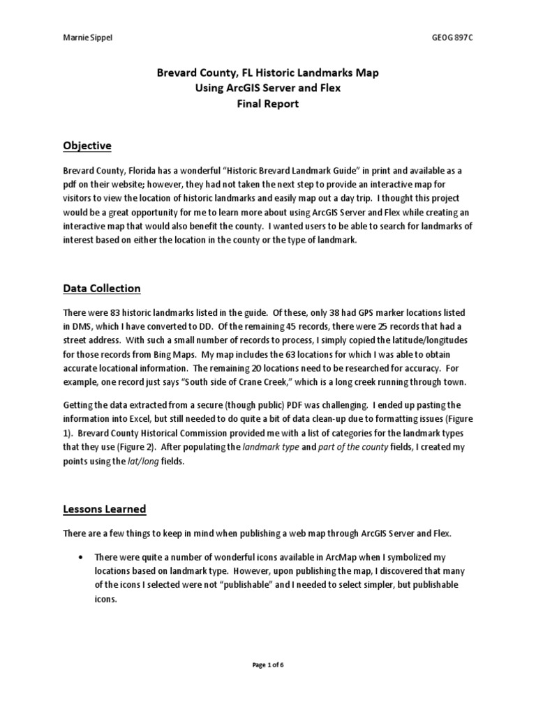 Brevard County, FL Historic Landmarks Map Using ArcGIS Server and Flex Final Report Objective