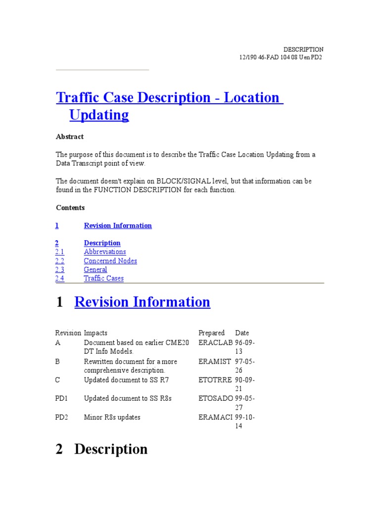 The purpose of this document is to describe the Traffic Case Location Updating from a