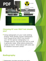 technique, e.g., PATT/AATT, and SPOT/RATT are the same techniques. (See Figure 2.2). The tip diffracted signal is generally a low amplitude signal. The signal-to-noise (S/N) ratios can be very low (2 to 1 S/N ratio) which makes it difficult to properly identify the tip signal. Typically, tip diffracted signals precede the base or corner trap signal. However, tip diffracted signals may be seen trailing the base signal. This is due to the spherical wave radiating from the tip of the flaw and reflecting off the ID surface and returning at a later time beyond the corner trap signal. With low amplitude tip signals, radio frequency (RF) signal display may be helpful in identifying the tip signals. There is some consideration that a phase reversal is noted between the base and the tip signal. For example, the tip signal may have a positive excursion and the base may have a negative excursion. (See Figure 2.3).