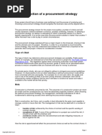 Other factors that may influence a Clients choice of procurement route include: The desire to be actively involved and informed during the life of a project A clear allocation of responsibilities/single-point responsibility Flexibility to change design during production The need for positive and constructive advice from consultants Fully motivated and co-operative project team no conflict.