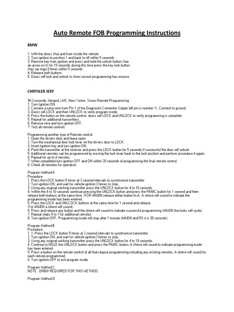 Auto Remote FOB Programming Instructions