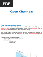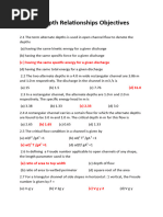 8 m-wide rectangular channel has a specific energy of 1.2 m. Water flow at a rate of 30 m3/s in a rectangular channel of 5 m width. Find (a) critical depth, and (b) critical velocity, if Manning roughness coefficient n = 0.030. Water flow at a rate of 25 m3/s in a trapezoidal channel with side slope m = 2.2, bottom width b = 3 m and Manning roughness coefficient n = 0.020. Find the critical depth, critical velocity and critical slope. Water flow with discharge of 8 m3/s in a triangular channel with side slope m = 2 and Manning roughness coefficient n = 0.020. Find the critical depth, critical velocity and critical slope. Find the diameter of a semi-circular channel that conveys 15.0 m3/s of water at critical state. A trapezoidal channel with bottom width of 3 m, side slope 1(v) : 1.5(h) and Manning roughness coefficient n = 0.012 carries a discharge of 50 m3/s. Draw the specific energy curve for water depths from y = 0 to y = 5 m at intervals of 0.25 m. Water flows in a rectangular channel at a rate of 7 m3/s/m and normal depth of 2 m. Find the maximum height of the weir to be built in the channel to produce critical flow above it. A trapezoidal channel has a side slope of 1(v) : 3 (h), bottom width = 2 m, bottom slope = 0.008 and Manning roughness coefficient n = 0.013. Water flows in the channel at a normal depth of 0.5 m. Find the minimum height of a broad-crested weir that produces critical flow above it. A long rectangular channel with width = 2.6 m has Manning roughness coefficient n = 0.015 and bottom slope So = 0.0008. Water flows at the rate of 10 m3/s. If a 0.7 m-high weir is built in the channel, find the depth of water upstream and downstream of the weir. Sketch the flow profile. Water flows with a normal depth of 1 m in a 3 m-wide rectangular channel. A weir is built which causes the sub-critical flow at upstream becomes super-critical at downstream. If the water depth above the weir is 0.76 m and discharge coefficient is 0.66, find the discharge. Water flows in a 2.5 m-wide rectangular channel at a rate of 5.3 m3/s/m and normal depth = 2 m. Find the maximum constriction width that is allowed in the channel without causing backwater at upstream. A long 2.6 m-wide rectangular channel with Manning roughness coefficient n = 0.015 and bottom slope = 0.0008 conveys water at 9.8 m3/s. If constriction is made with a width of 2.4 m, find the depth of water upstream and downstream of the constriction. Sketch the flow profile.