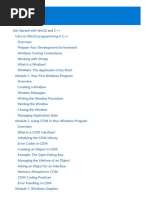 ...................................................................................................................................................................................... 1 Foreword ...................................................................................................................................................................................... 4 About the Author ........................................................................................................................................................................ 6 Core MFC ...................................................................................................................................................................................... 10 The MFC Architecture ........................................................................................................................................................... 10 A Brief History of MFC ...................................................................................................................................................... 10 The MFC Class Hierarchy ................................................................................................................................................ 10 CObject ........................................................................................................................................................................ 10 CCmdTarget ................................................................................................................................................................. 10 CWinThread ................................................................................................................................................................. 10 CWinApp ...................................................................................................................................................................... 10 CWnd ........................................................................................................................................................................... 10 CFrameWnd ................................................................................................................................................................. 10 CView ........................................................................................................................................................................... 10 CDocument .................................................................................................................................................................. 10 Summary ............................................................................................................................................................................ 10 MFC Dialogs, Controls, and Data Interaction ................................................................................................................ 36 Creating an Application ..................................................................................................................................................... 36 Starting and Using MFC AppWizard ............................................................................................................................. 36 The AppWizard-Generated Code .................................................................................................................................. 36 Modifying the Application .................................................................................................................................................. 36 Adding Dialog Controls ................................................................................................................................................. 36 Adding Initialization ....................................................................................................................................................... 36 Using Dialog Controls ................................................................................................................................................... 36 ToolTips ............................................................................................................................................................................... 36 Enabling ToolTips ......................................................................................................................................................... 36 Displaying Text ............................................................................................................................................................. 36 Dialog Data Exchange ...................................................................................................................................................... 36 Standard DDX .............................................................................................................................................................. 36 UpdateData .................................................................................................................................................................. 36 Using Standard Dialog Boxes .......................................................................................................................................... 36 File Open/Save ............................................................................................................................................................. 36 Color Selector ............................................................................................................................................................... 36 Font Selector ..........................................................................................................................................