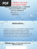 Congratulationsontakingapositivesteptowardyourcareerdevelopment.Takingthisassessment willhelpyougetstartedonyourjourneytowardamorefulfillingworklife. PRINTTHISASSESSMENT,ANSWERTHEQUESTIONS,ANDSCOREUSINGTHEINSTRUCTIONSBELOW. GUIDANCEONYOURNEXTSTEPSISPROVIDEDATTHEEND. Whatallowssomepeopletoeffectivelymanagetheircareerswhileothersdosolesssuccessfully? Often,itisthemasteryofseveralkeycompetenciesthatallowpeopletobesuccessfulindeveloping theircareers.Asyoureadthefollowinglistofcareermanagementbehaviors,assessyourownlevel ofcompetencyineachareaofourcareerdevelopmentmodelusingthefollowingscale: NotTrue(1) SomewhatTrue(2) VeryTrue(3) SelfAssessmentCompetencies CareerAwarenessCompetencies Iknowwhatmakesworkenvironmentspersonallysatisfyingandproductivetomeandamable tocreatetheseenvironments_____ Iunderstandthecultureofmyworkplace_____ Iamabletoidentifydesiredorganizationalvaluesandgoals_____ Iunderstandindustrychangesandtheirimpactonmycareereffectiveness_____ Ihaveasenseoffutureoptionsandopportunitiesformycareer_____ Iameffectiveatbuildingrelationshipsandsupportsystemsformycareergrowth_____ TOTALCAREERAWARENESSCOMPETENCYSCORE:__________ Iknowandvaluemypersonalstrengthsandabilities_____ IknowhowIamperceivedbyothers_____ Icanrealisticallyassessmycareerinrelationtoperformancefeedback_____ Iknowandappreciatemycareervalues_____ Iknowandvaluemypersonalitytypeandworkstyle_____ Iknowandcanarticulatemycareerinterestsastheychange_____ TOTALSELFASSESSMENTCOMPETENCYSCORE:__________