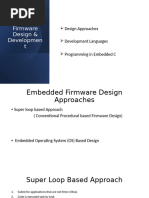 Two salient features of Embedded Programming are code speed and code size. Code speed is governed by the processing power, timing constraints, whereas code size is governed by available program memory and use of programming language. Goal of embedded system programming is to get maximum features in minimum space and minimum time. Embedded software needs to include all needed device drivers at manufacturing time, and the device drivers are written for the specific hardware. Embedded systems are programmed using different type of languages: 1. 2. 3. 4. Machine Code Low level language, i.e., assembly High level language like C, C++, Java, Ada, etc. Application level language like Visual Basic, scripts, Access, etc.
