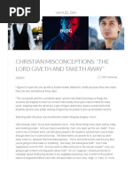 The Book of Job is one of the oldest books in the Bible. We believe that Job was a real historical figure. (Ezekiel 14:14 and Ja es !:11 both refer to hi ". This book deals with the age#old $uestion% &Wh' do the godl' suffer(). *n this book% we have the hu an reasonings of en% as well as +od,s answer to the -roble . The first cha-ter of Job% sets the stage for the rest of the cha-ters which follow. .an' -eo-le have isunderstood this cha-ter% and therefore% have drawn wrong conclusions fro this Book. .ost church -eo-le have been taught at least / things fro this -assage: (1" +od is in control. (0" 1atan can,t do an'thing to 'ou% without first getting -er ission fro +od. (/" Therefore% no atter what co es% 'ou should understand that +od allowed it% for so e higher -ur-ose # (To teach 'ou so ething% or to develo- 'our faith".