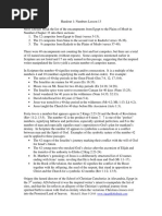 SECTION ONE: -s the book opens, we see the +hildren of Israel in the wilderness of 8inai. %he law had been iven, the tabernacle built, and the priests assi ned to their service. Now God was oin to prepare the nation for its work. He was abut to lead them into the promised land. %he book opens with God numberin the +hildren of Israel. 3e learn the lesson that God knows and cares for his own. 3e see the camp pitched around the tabernacle. %hree million people, and God in their midst. He also manifested His presence by a cloud in the daytime, and a pillar of fire by ni ht. *very Israelite knew that God was present. He was the supplier of their needs. *ven their clothes did not wear out. %here, in the trackless desert, He led them and supplied their every need. God was there. -nd, He is in the +hurch to meet our every need. But, sin crept into the camp. %he people be an to murmur a ainst God. 8o came the !ud ement of fire 4../.$,5. %hen they complained about the food 4../'5. It almost ets monotonous. %he people lon ed for the arlic and onions of * ypt. -s a result of their complainin , God sent them >uail for thirty days. %hey made luttons of themselves, and while the flesh was yet between their teeth, ere it was chewed, the wrath of the ?ord was kindled a ainst the people, and they were smitten with a very reat pla ue 4../,,5.Numbers .2/.$.1 records the sin of :iriam and -aron $ 4rebellion a ainst Gods dele ated authority5. - ain, !ud ement fell. -nd, verse .0 makes it plain that there was no pro ress until the sin was dealt with. 8in hinders pro ress. 4In this case , million people were brou ht to a "screechin halt# because of sin in leadership.5