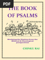 Take your Bible in your hand, and turn to the middle book. It is the book of Psalms. This is not only true physically, but in a spiritual sense, it is true also. This book is central in human experience. It is a book in which ass the emotions of the human soul find expression. You will never experience anything that is not described in the book of Psalms. hen you face deep sorrow, you will find consolation in this Book. hen your heart overflows with !oy, you may best express it by the words from the Psalms. In the Psalms, you will read the cry of the penitent sinner, and you will find the everflowing worship of an adoring saint. I" the book of Psalms, you will find #od revealed, and man described. You will know as never before that man is finite, and #od is infinite. It is a book that looks back to learn, looks around to see, and looks ahead in hope. The $Psalm% is the anglici&ed form of a #reek word, which really means $a poem set to music%. The 'ebrew title of the book was simply $Praises%, or $The Book of Praises%. It is preeminently the worship book of the 'ebrew people, and consists of a collection of songs which express the attitude of the soul in the presence of #od, when contemplating past history, existing conditions, or prophetic hopes. The Psalms were used in Temple worship. The Book opens with the word $Blessed%. This word is multiplied throughout the Psalms. It has to do with praise. (an)s chief end is to glorify #od. AUTHOR: *avid was the principal author. +eventy,three Psalms are attributed to him. -ifty are anonymous. The ./th and .0st Psalms are by (oses. Two are by +olomon 123 4 0325. Besides these, 6saph 1*avid)s choir leader5, and sons of 7orah 1a family of official musicians5, and 8eduthun wrote some. (any believe that Psalm 00., the remarkable Psalm about the ord of #od, was written by 9&ra. DIVISION OF THE PSALMS: In the 'ebrew Bible, the Book of Psalms is divided into : books. 9ach of these five books contain a certain concept and revelation of #od, and the resultant worship of the heart. 9ach book ends with the *oxology 1ascribing #lory to #od5. The *oxology and the names of #od used in them, summari&e the message and the theme of that book. The divisions of the book are; B<<7 0; B<<7 3; B<<7 >; B<<7 =; B<<7 :; Psalms 0,=0 Psalms =3,23 Psalms 2>,@. Psalms ./,0/B Psalms 0/2,0:/ *oxology , Ps. =0;0> *oxology , Ps. 23;0@,0. *oxology , Ps. @.;:3 *oxology , Ps. 0/B;=@ *oxology , Ps. 0:/ 1?orresponds to #enesis5 1?orresponds to 9xodus5 1?orresponds to Aeviticus5 1?orresponds to "umbers5 1?orresponds to *eut.5 7ey ord1s5 man deliverance sanctuary wandering ord of #od