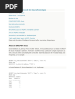 Whenever a subquery with the ALL operator fails to return a row, the query is automatically true. This is different from the ANY operator, which returns false. Set Operators IN UNION operator the results are automatically sorted by the order in which the columns appear in the SELECT list. a query containing the UNION operator is more time-consuming to execute than a query with the UNION ALL operator All set operators, except UNION ALL, eliminate duplicate values, so DISTINCT is not needed. Complex Joins The keywords LEFT OUTER are added to the JOIN keyword, indicating that the rows in the table to the left side of the JOIN keyword are to be listed. Oracle does not support a full outer join with the (+) outer join operator. To accomplish a full outer join, you need to use either the ANSI full outer join syntax or the UNION operator. Insert, Update, and Delete The BFILE data type allows you to store the pointer to an external binary file, such as an image file. To store multimedia content in the Oracle database, use the BLOB data type. The following is the syntax for the conditional INSERT ALL. INSERT ALL WHEN condition THEN insert_clause [insert_clause...] [WHEN condition THEN insert_clause [insert_clause...]...] [ELSE insert_clause [insert_clause...]] (query) The insert_clause syntax is defined as follows. INTO tablename [(column [, column]...)] [VALUES (expression|DEFAULT[,expression|DEFAULT]...)] Oracle places a lock on a row whenever the row is manipulated through a DML statement. This prevents other users from manipulating the row until it is either committed or rolled back. Users can continue to query the row and see the old values until the row is committed. To include single quotes use this notation q!ONeil! - - q!! q single quote delimiter then the string then single quote