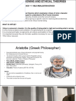 Ethical Theory 3: Deontology Famous Proponents: Immanuel Kant, W.D. Ross What makes something good or bad, right or wrong, is that it conforms to some (rational) duty Basic Principle: Fulfilling duties towards self or other persons One should chose the action which best conforms to ones recognized duties Important Variation: are these duties discovered and understood primarily by using reason (Kantian Deontology), or by healthy common sense (Rossian Intuitionist Deontology) What should the student provide? Invoke duty as a principle or something like it: What makes something good or bad, right or wrong, is that it conforms to a duty discoverable by reason Not enough to simply say that a person has a duty to do X Student has to be able to identify what the duty is in general o For Kantian, explain which formulation of categorical imperative o For Rossian, which prima facie duty or duties Be able to explain how the particular actions would correspond to the general duty or go against it Notice: actions either in conformity with duty or against it. Actually indicate that theory would pick that choice as best