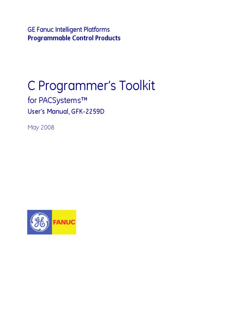 This manual contains essential information about the construction of C applications for PACSystems control systems. It is written for the experienced programmer who is familiar with both the C programming language and with the operation of PACSystems control systems. For more information about PACSystems, refer to the list of documents at the end of this chapter. The PACSystems C Programmers Toolkit contains libraries, utilities, and documentation required to create C applications for the PACSystems control system. C blocks are constructed using the ANSI C programming language using text editing and toolkit applications on a personal computer. The C blocks are incorporated into a PACSystems application program through Proficy Machine Edition programming software. Using the programming software, C blocks can be called from ladder logic or invoked by an I/O, module or timed interrupt. In the programming software, use the Add C Block feature to insert C blocks. The PACSystems CPU supports one type of C block, which has the capabilities of both the Series 90-70-type C blocks and C function blocks. The PACSystems CPUs and the PACSystems C Toolkit do not support Standalone C Programs, which is a feature of the Series 90-70. A PACSystems C block is, by default, limited to 256Kbytes in size, provided there is sufficient PLC memory. Examples of calculations that might be performed in C blocks include: Ramp/soak profiling Lead/lag calculation Message generation Input selection Arithmetic operations PID Sorting, moving and copying data