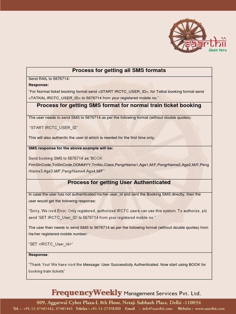 Process for getting SMS format for normal train ticket booking