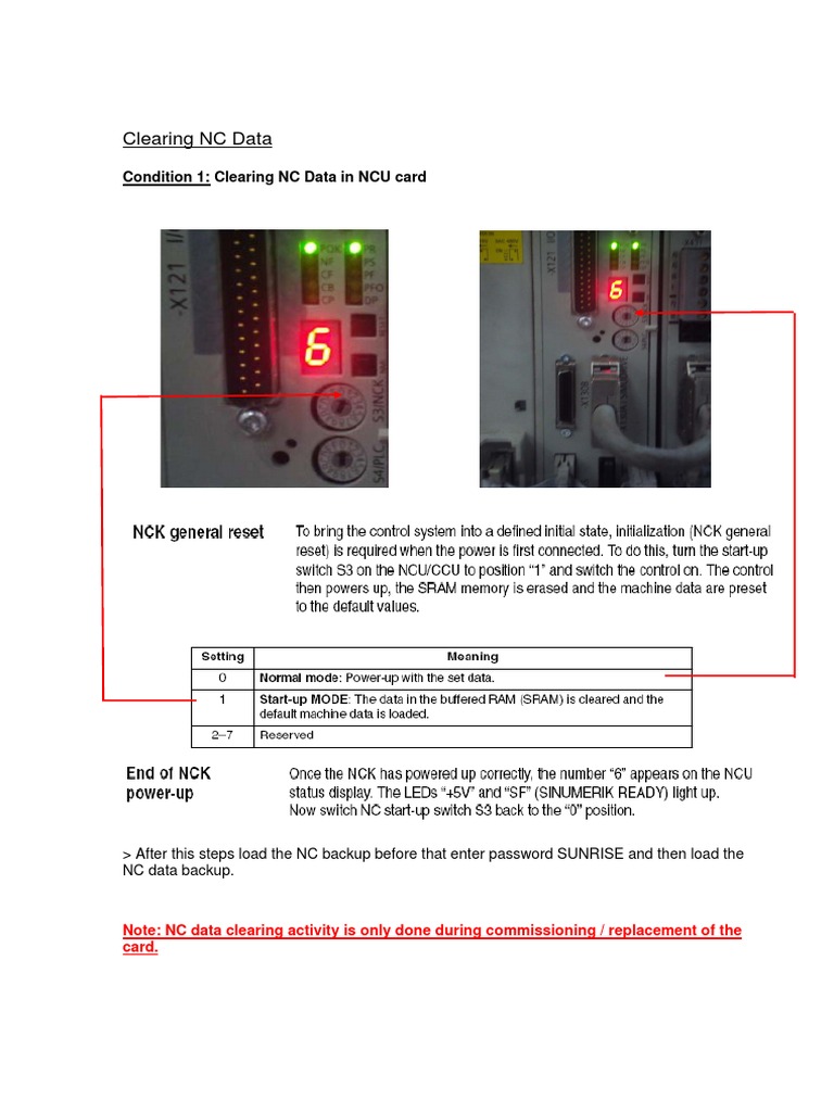 Note: NC data clearing activity is only done during commissioning / replacement of the