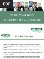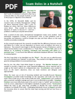 Belbin team roles describe a pattern of behaviour that characterises one persons behaviour in relationship to another in facilitating the progress of a team. The value of Belbin team-role theory lies in enabling an individual or team to benefit from self-knowledge and adjust according to the demands being made by the e ternal situation.